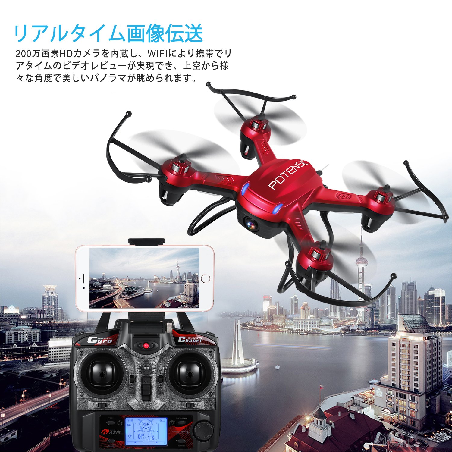 You can work with iPhone / Android smartphone with WiFi and drones with smartphone.
