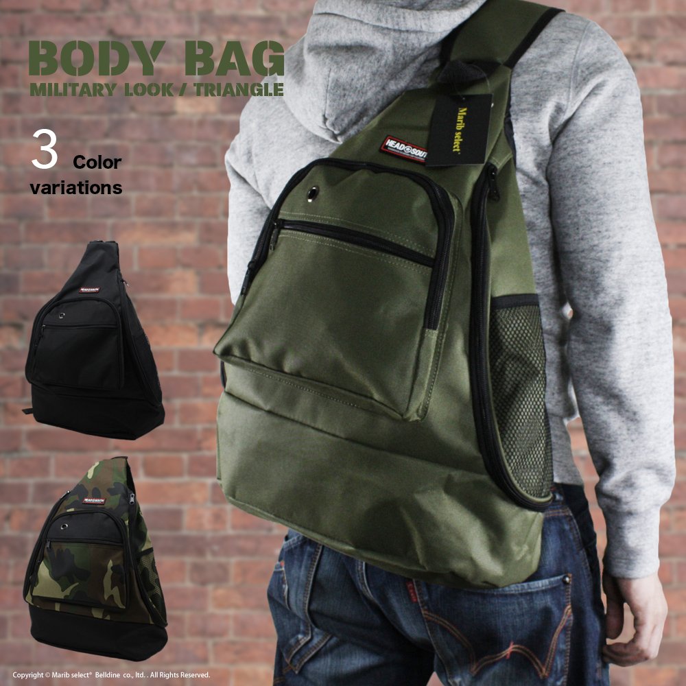 Military style triangular form body bag, one shoulder bag