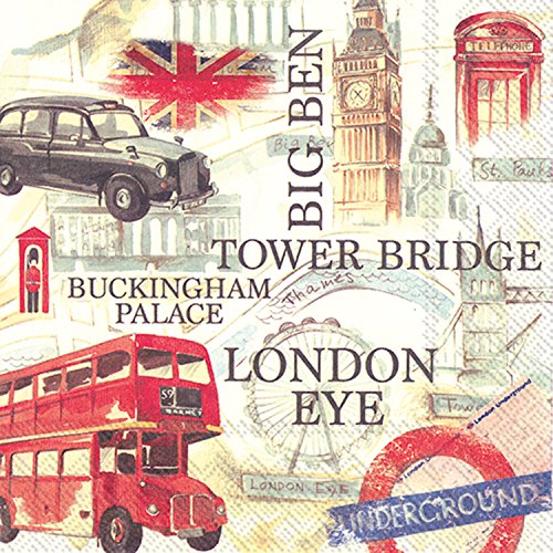 Ideal Home Range C733500 20 Count London Sightseeing 3-Ply Paper Cocktail Napkins, Multicolor
