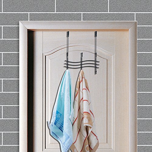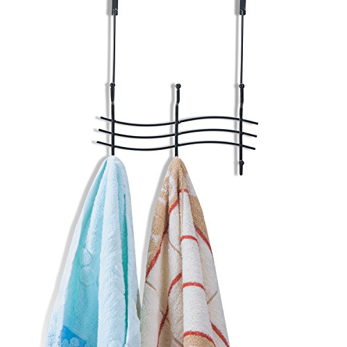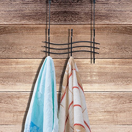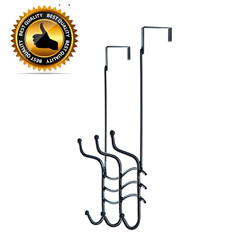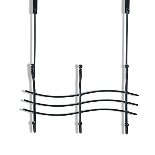 Over The Door Metal Hooks/Hangers - Decorative Organizer Rack with 6 Hooks for Keys Clothes Coats Hats Belts Towels Scarves Bags and More(Black)