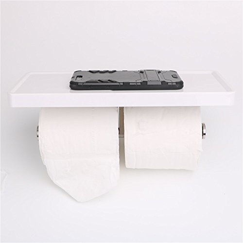 Toilet Paper Holder Double Tissue Roller Hanger with Cell Mobile Phone Shelf for Bathroom Kitchen Wall Mounted