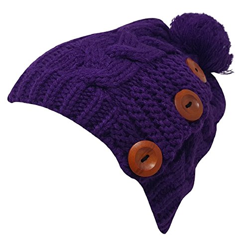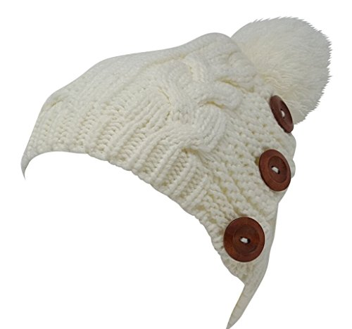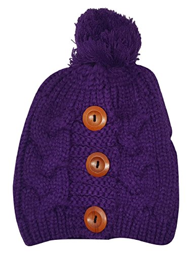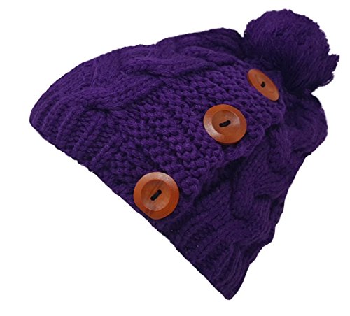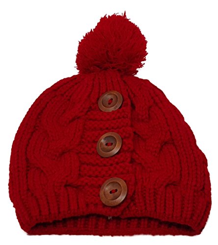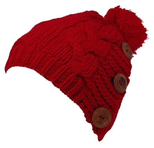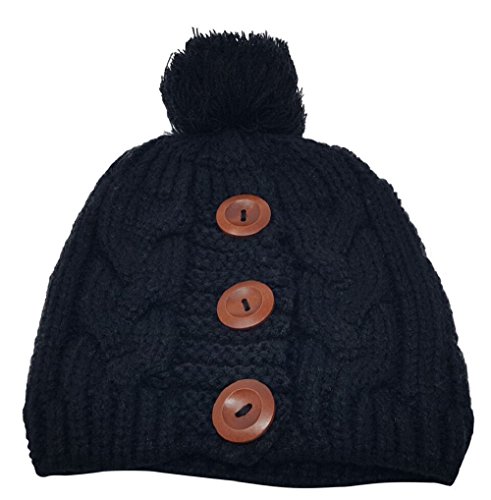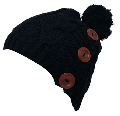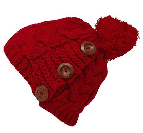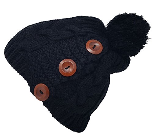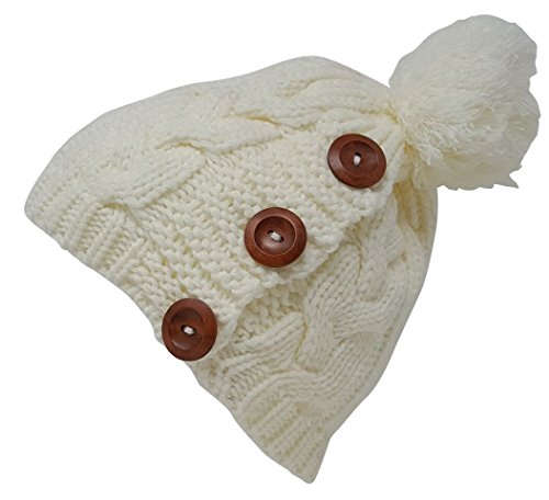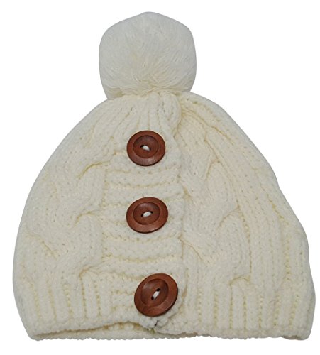 Delano 80 Gram Winter Cable Knit Beanie Hat with Pom Pom and Buttons (Multi Colors)