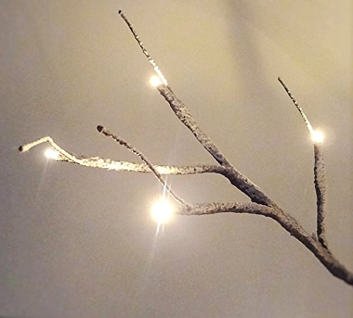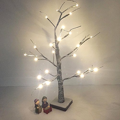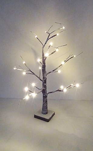 FEATURES - Snow covered branches and base, 24" height, long lasting warm white led lights.