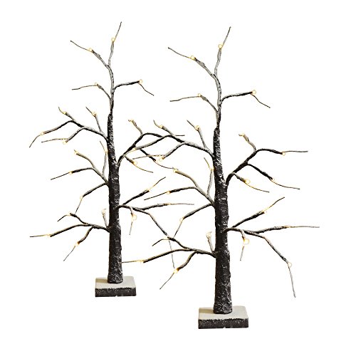SET OF 2 - Loui Michel Cie 24 Inch Lighted Snow Tree LED Battery Operated Christmas Decoration Lamp Home Wedding Party Indoor Outdoor Use Warm White