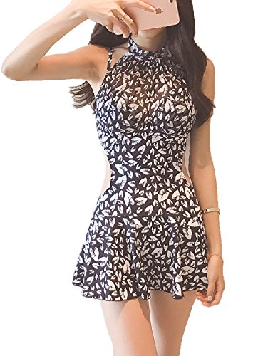 -. Title : (サラキッド) SaraKid 花柄 ホルター モノキニ ビキニ フレア スカート 水着 ホワイト ブラック モノトーン (XLサイズ)