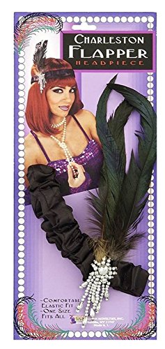 -. Feature : Headpiece with Attached Feathers. / Black with Silver Accents. / Adult One Size