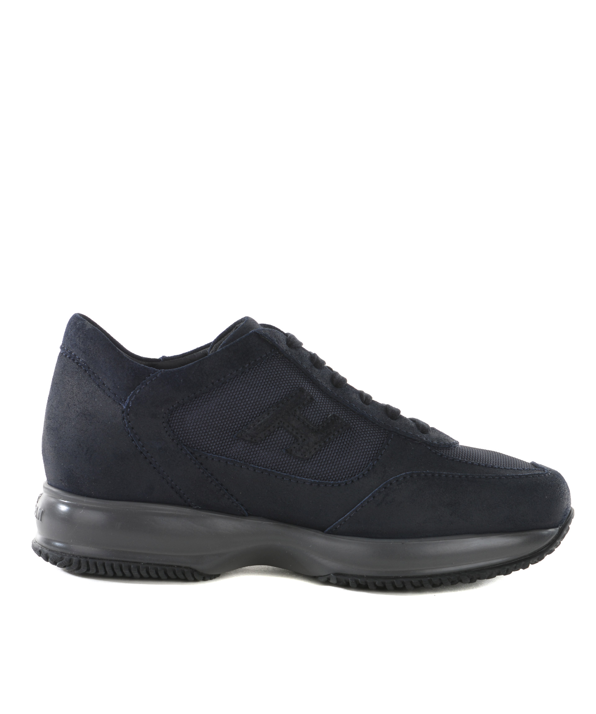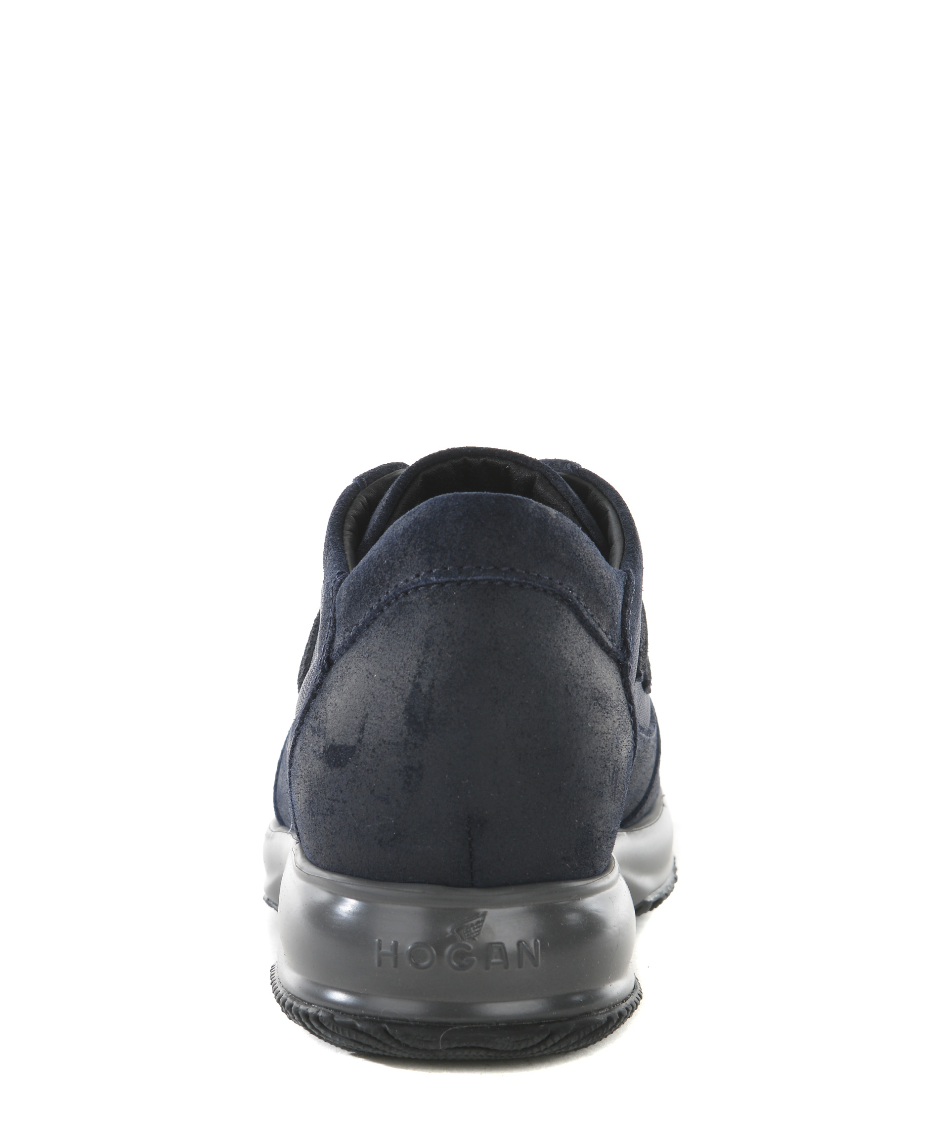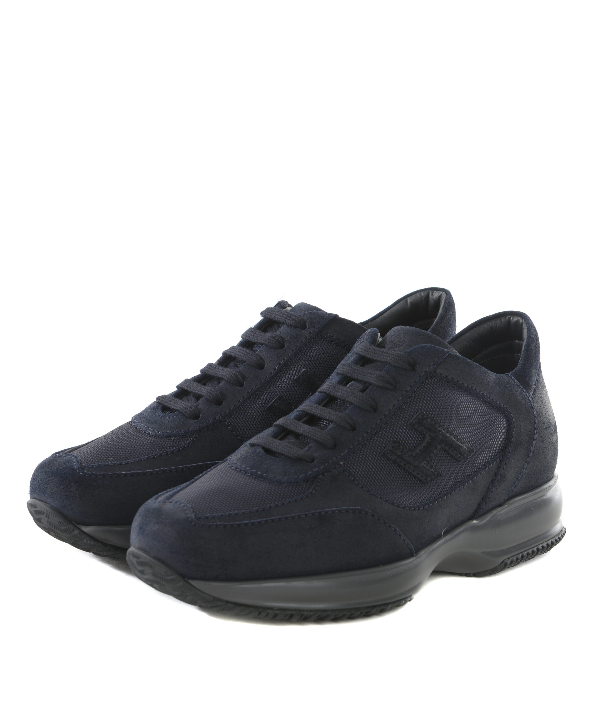 Sneakers Hogan in camoscio effetto crosta e nylon Blu scuro. Stringate. H laterale applicata. Logo sulla linguetta. Rialzo interno 20 mm. Suola 30 mm in gomma. Misura in foto 5
