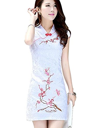 -. Feature : Sleeve Style: Cap Sleeve / Retro Vintage style,slant opening front,plum blossom P.R.Inted / Casual and formal wear / Slim style, knees length, beautiful and elegant / We ship it with USPS if you choose standard shipping, the estimated arrival date is about 7-15 days