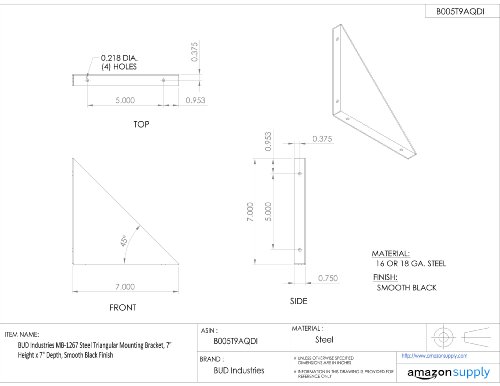 -. Title : BUD Industries MB-1267 Steel Triangular Mounting Bracket, 7" Height x 7" Depth, Smooth Black Finish