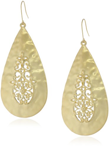 Gold-Tone Filigree Hammered Teardrop Earrings