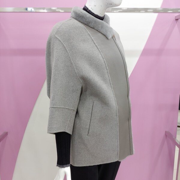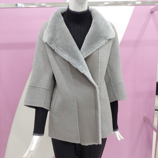 신상제품으로 무스탕 느낌이나는 울 캐시미어 소재의 코트.부드러운 양털로 포인트를 주어 더욱더 멋스럽게 착용 가능한 코트.여유핏으로 나온 울 코트.
