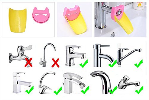 -. Feature : Designed to fit on most conventional bathroom faucets, Compatible with most faucets of all shapes and sizes / The faucet extender bring water closer to make hand washing easier, and with kid faucet extender, now the water stream from the faucet is reachable to toddlers without having to stand up on a stool which is dangerous / Easy to install, use, remove, clean!Put it right through the slit on the extender,fix it.Comes in many cute different colors / Safe:It is made of a BPA, PVC, and Phthalate free plastic.With rounded corner and zero sharp edges