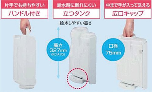 ■침실 퍼스널 룸에 추천.■플라스마(plasma) 클러스터 샤워와 스피드흡진에 강력 정화■24시간 센서로 감시,지키고 에코 운전■급수 손질이 하기 쉬운 급수 탱크■정화 방식:가습+「고농도 플라스마(plasma) 클러스터7000」공중 정화&필터 정화■공기 청정 적용상 면적(기준):가습공기 청정~13다다미(~21m2)/공기 청정~18다다미(~30m2)■가습적용상 면적(기준):프리패브 서양식 방~11다다미(~18m2)/목조 다다미방~7다다미(~11m2)■가습방식가 습능력 수 탱크 용량:기화 방식 최대400mL/h 약3.0L■외형 치수(mm):폭375×(길이)깊이238×높이570 (돌발부 포함한다 폭382×(길이)깊이246×높이570)■질량(kg):약7.7■플라스마(plasma) 클러스터■KC-A