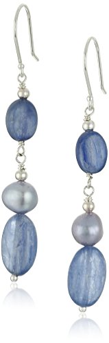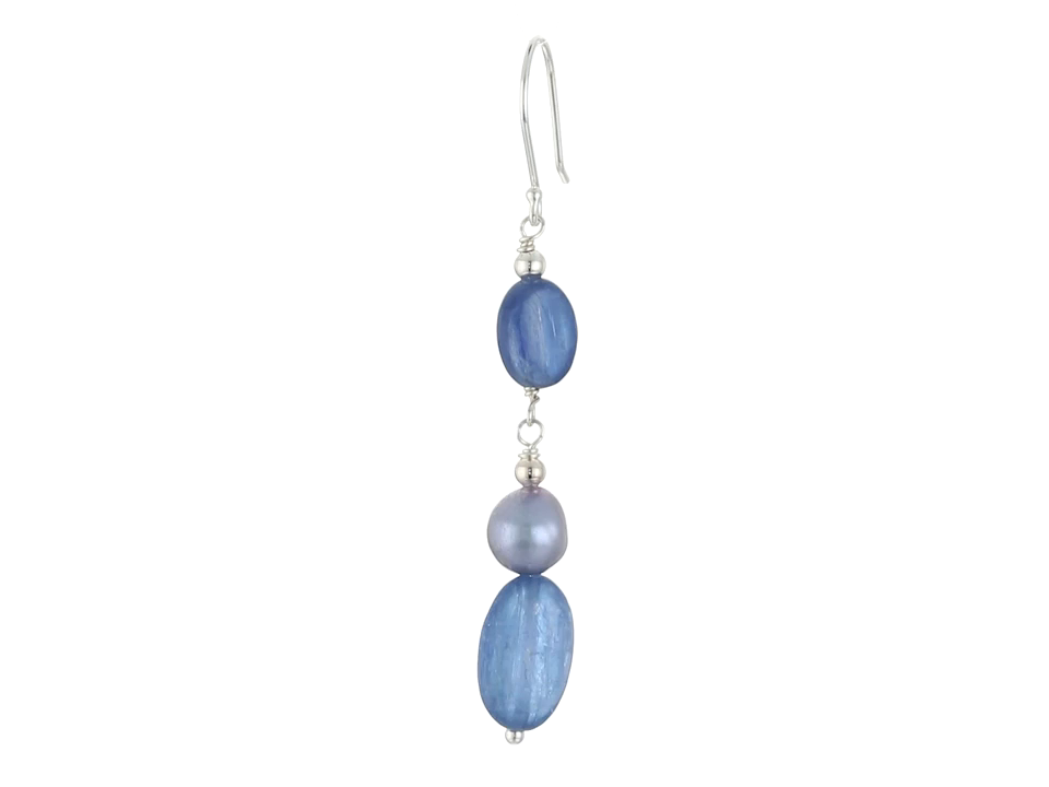 Kyanite Ovals with Blue Denim Dyed Freshwater Cultured Pearl Accents Drop Earrings