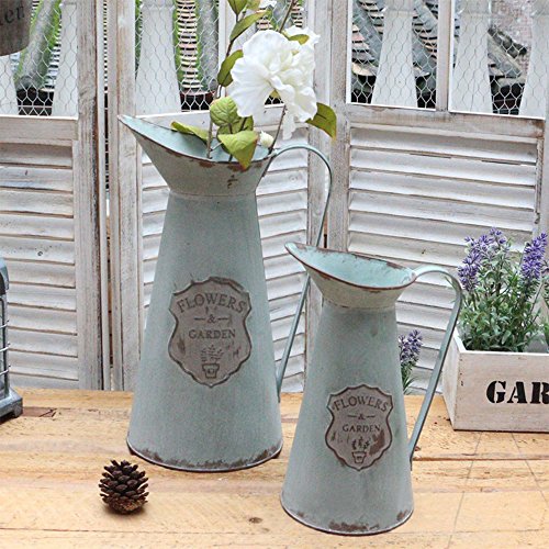 -. Title : APSOONSELL Metal Flower Vase Decorative Tin Water Pitcher Style Rustic Garden Decor