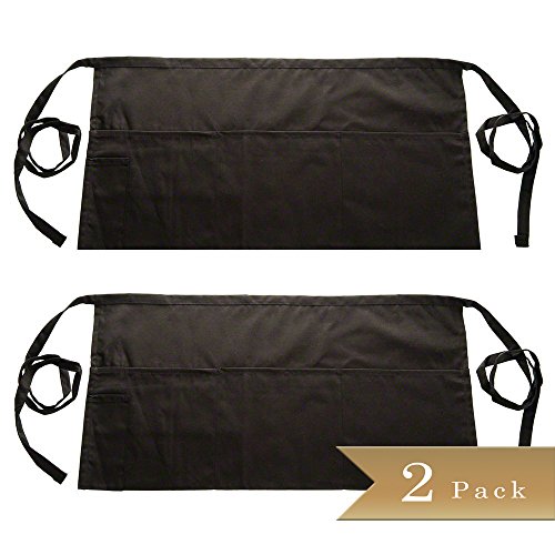 Set of 2 - TrueCraftware Black, Cotton-Blend, 4-Pocket Waist Aprons - 23" x 12"