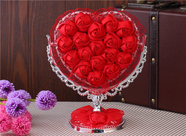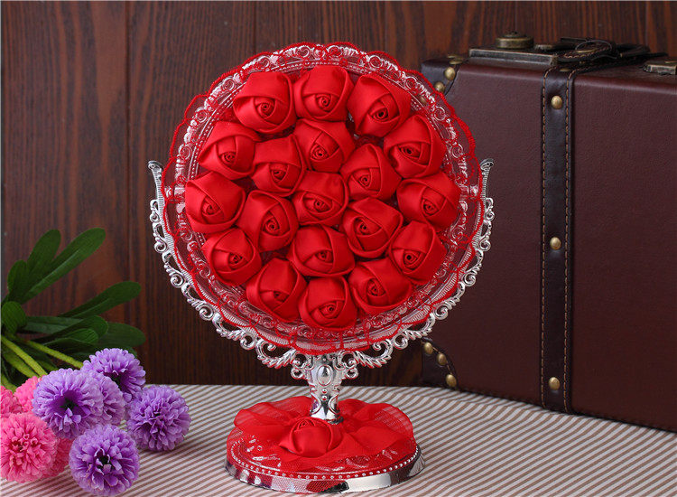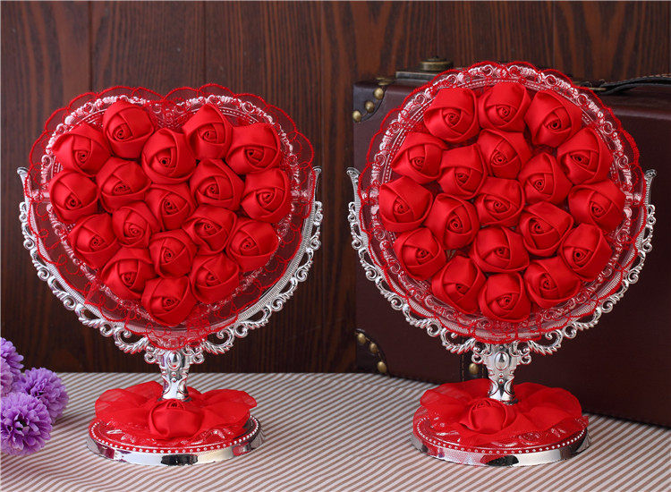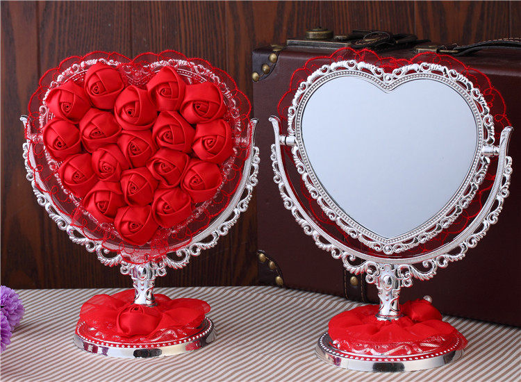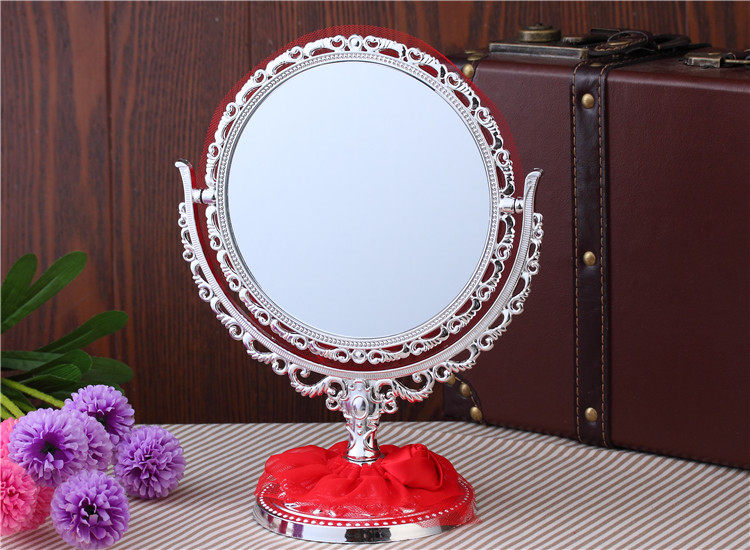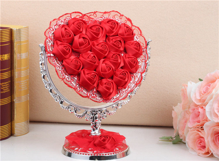 品名:红色玫瑰布艺花边化妆镜