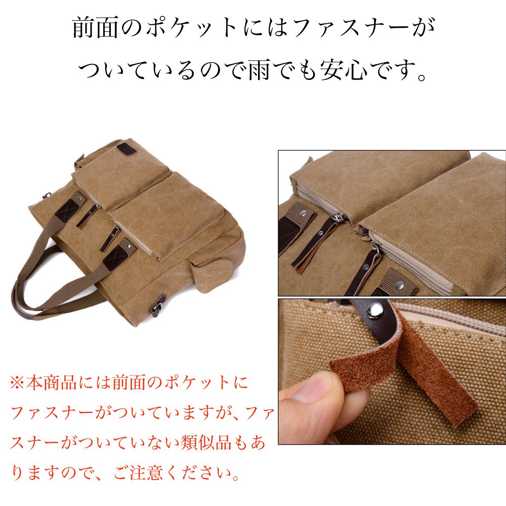 ※ This good item has fasteners on the front pocket, but please note that some items do not have fasteners.
