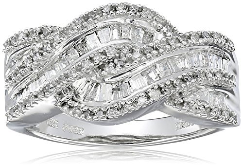 -. Binding : Jewelry -. Brand : Amazon Collection -. Department : womens -. Feature : White gold ring featuring overlapping rows of round and baguette-shape diamonds / All our diamond suppliers confirm that they comply with the Kimberley Process to ensure that their diamonds are conflict free. / Imported -. Label : Amazon Curated Collection -. Manufacturer : Amazon Curated Collection -. Model : RF 57681/10W/HS-parent -. ProductGroup : Jewelry -. ProductTypeName : FINERING -. Publisher : Amazon Curated Collection -. Studio : Amazon Curated Collection -. Title : 10k White Gold and Diamond Twist Ring (1/2 cttw, I-J Color, I3 Clarity)