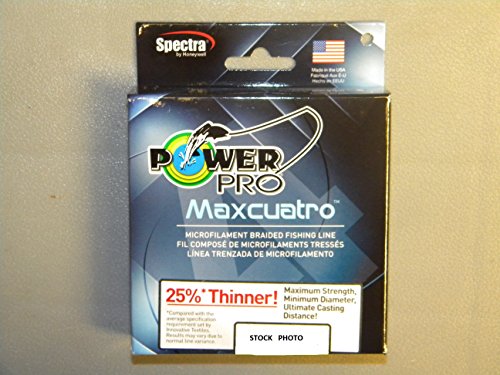 Power Pro maxcuatro microfilament braided line is 25 percent thinner than existing power Pro lines with equivalent strength. Maxcuatro line optimizes your casting distance while increasing your reel's capacity. With 4-end lighter and softer construction made with Honeywell spectra Ht fiber, this ensures longer casting distance Moss Green color is ideal for water types ranging from Glacial and high run off River systems to all oceanic regions of the world. This color is also suited for fishing in clear lakes to lakes that have large algae blooms. Green is similar to many Bio organisms and will blend in to the background of the typical surroundings with which a fish is familiar.Feature