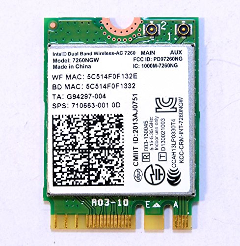 Intel 7260NGW Dual Band Wireless-AC 7260 802.11ac, Dual Band, 2x2 Wi-Fi and Bluetooth 4.0