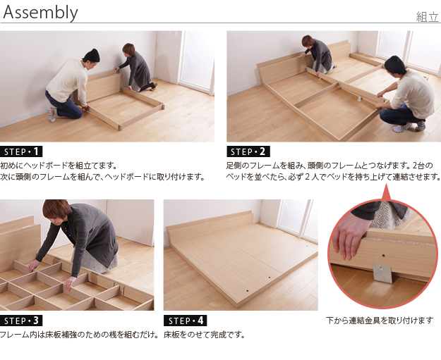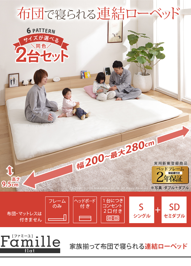 ●フロアベッド 連結ベッド ロースタイル スリムヘッドボード 2口コンセント