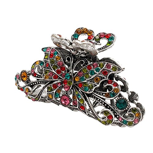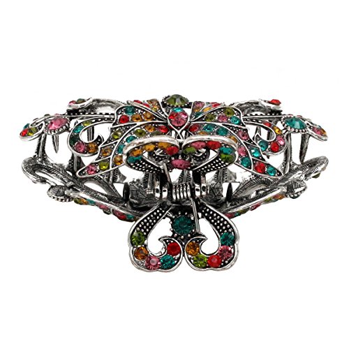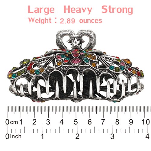 -. Feature : Pack of 1 vintage silver style metal hair claw,intricate filigree design / Size:4.0" x 1.6" x 2.0"(Large); Material:Metal alloy. Metal clip decorated with multi-faceted glass crystals,color may vary / Weight:0.18lb,pretty strong and heavy,strong metal sping,metal clips have teeths for strong grip on hair,hold well with thick and slick hair.Very stylish and comfortable,vibrant claw clip.Perfect for updos or an emergency bad hair day fix / It's idea hair clip for women,girls,hairdresser,use to clip back sections of hair,perfect for weeding,party,festival / For any occasions,home and office.A strong pump handle for ability to actually hold the selected hair in place,suitable for shower,bath,makeup,working,running,sports,garden and household cleaning,it never came loose