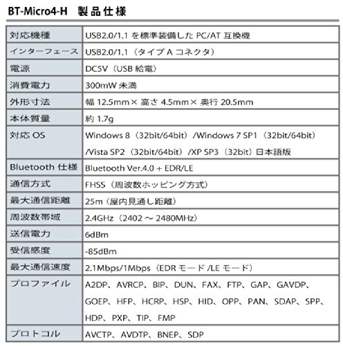 Bluetooth HDP 미대응 PC에,「BT-Micro4-H」를세트업하면 대응PC와 동등의 통신 환경 입니다.(주의 : 이용 예정의 PC가 Bluetooth내장타입의 경우에는,내장Bluetooth를 OFF로 하십시오.)