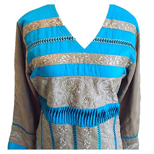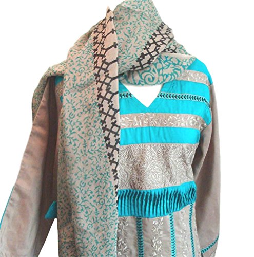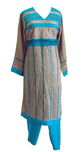 Product Description A beautiful cotton shalwar kameez with V-shaped neckline. The A-line kameez has a elegant embroidery in threadwork of contrast and self colors all over the front part. The use of the contrast colored patterns on the kameez are a major highlight in this ensemble. The embroidery is repeated on the sleeves too. The shalwar is plain, in the color of the border. This ensemble comes with a dual-tone matching georgette dupatta. A beautiful ensemble that is perfect for party wear and all special occasions. 0