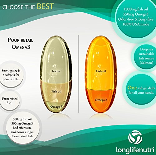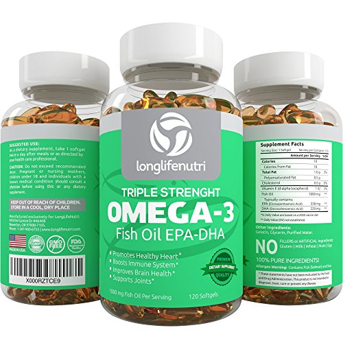 - Feature : ✔ PREMIUM HIGHEST QUALITY, POTENCY & PURITY FISH OIL: LongLifeNutri Omega 3 has high levels of EPA & DHA essential fatty acids, two crucial Omega-3s. Our product is molecularly distilled, this process ensures that all heavy metals (mercury) are removed. Through this research verified procedure you get the safest and purest product. Non-GMO & Gluten Free. 100% Pure Ingredients. MADE IN USA. Our products are made according to strict GMP standards. / ✔ CLINICALLY PROVEN BENEFITS OF FISH OIL: Consist of brain health, heart health, reduces inflammation & helps for joint pain relief, enhanced immune system support & booster, cardiovascular health, reduce skin problems, healthy blood pressure, enhanced bone health, improved mood & focus. Omega 3 is the single most important vitamin you can take. / ✔ PERFECT RECOMMENDED DOSAGE: Just one serving a day of our molecularly distilled Omega 3 pills deliver the highest recommended amount of DHA and EPA, which are the only ingredients proven to improve your health. Receive a FULL 120 capsule, 4 months supply. EASY TO SWALLOW: Our softgels are easy to swallow without causing burps or stomach issues. / ✔ LIMITED TIME PILL CASE BONUS - If you buy today you'll get entirely FREE a LongLifeNutri Pill Case keeping pills fresh, secure & organized. TAKE ADVANTAGE of this super deal now! / ✔ BACKED by LongLifeNutri Lifetime Money-back Guarantee: We only develop products that were carefully tested - Buy the best with confidence - Love our Omega-3 or get every penny back, no questions asked, it's that easy.