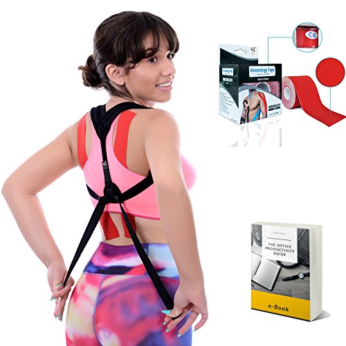Shoulder Posture Corrector for Women Men | Adjustable Back Clavical Support Brace | Controls Postural Correction + Kinesiology Tape for Muscle Support +...