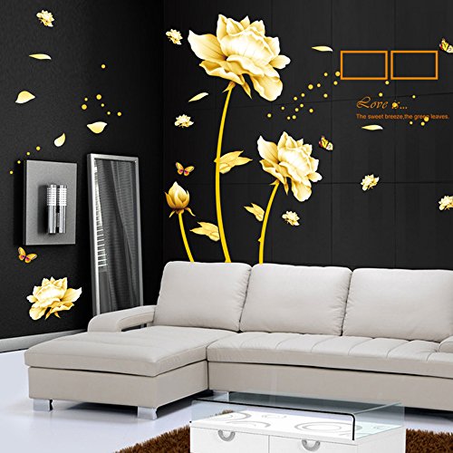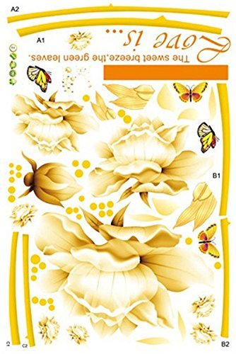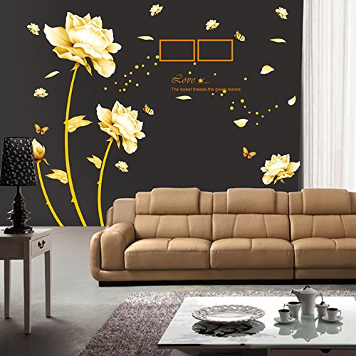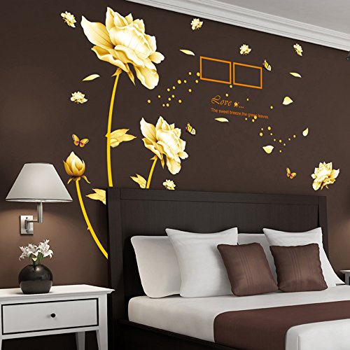 ufengke® Beautiful Peony Flowers Butterflies Photo Frame Wall Decals, Living Room Bedroom Removable Wall Stickers Murals