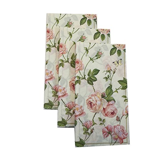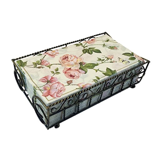 Garden Gate Antique Brass Guest Towel Caddy with 32 Count 3-Ply Paper Guest Towel Napkins, Rambling Rose