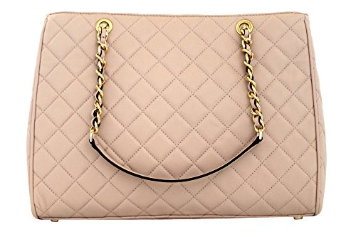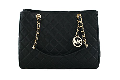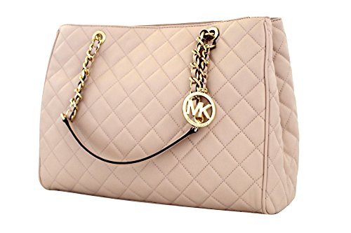 -. Brand : MICHAEL -. Department : womens -. Feature : Double top handles. Magnetic closure; lined Zip compartment, interior zip pocket, four interior slip pockets, interior key fob Log hardware 14"L x 5"W x 10"H; 9" handle drop Leather Imported -. ProductGroup : Shoes -. ProductTypeName : HANDBAG -. Title : Susannah Womens Large Quilted Leather Handbag