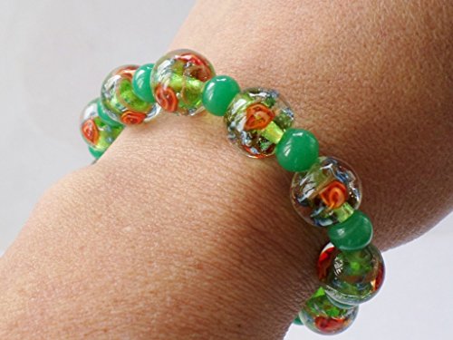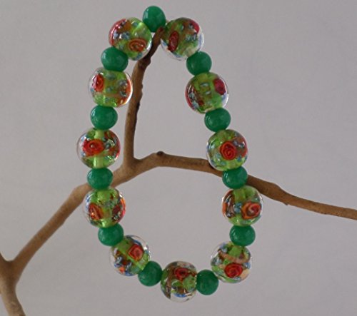 -. Title : 7" green glass stretch bracelet