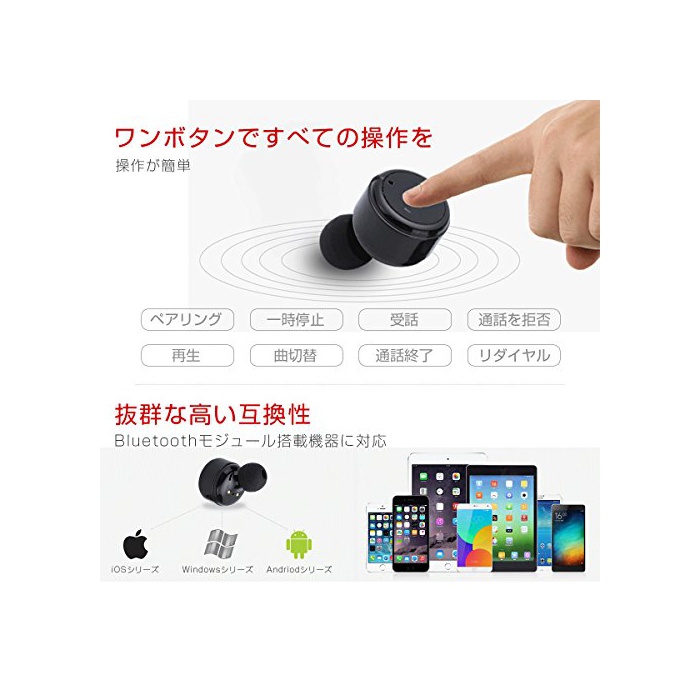 ■ 심플하고 조작 간단한 원 버튼 헤드 세트 디자인,다기능을 원 버튼에 집중 하고 있습니다. 그 원 버튼에 음악 재생/일시정지,통화 개시/종료/거부/re 다이얼 등의 조작을 모두 실현 가능합니다.한쪽 손으로 원 버튼을 편리하고 조작으로 옵니다.