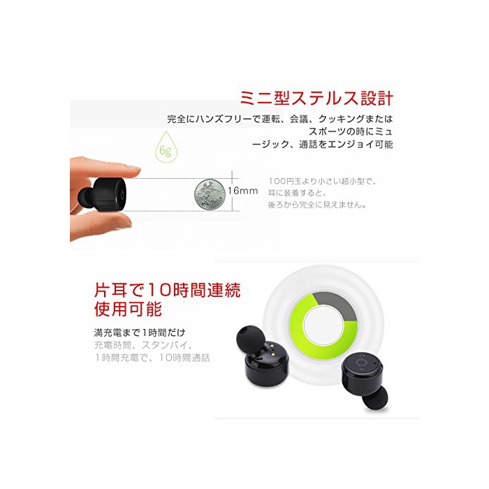 ■ 이어폰 본체의 사이즈는 100엔옥 보다 작은 초소형으로,귀에 장착하면,뒤에서 완전히 보이지 않습니다.중량은 불과 4.5g의 가벼운 바디,장시간의 장착에서도 높은 쾌적성입니다.