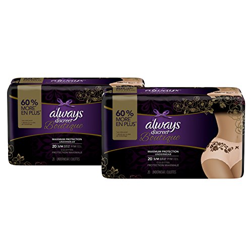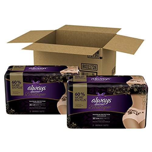 ReleaseDate : 2017-09-25 Studio : Procter Gamble - HABA Hub Publisher : Procter Gamble - HABA Hub Binding : Health and Beauty Product Description Discover the secret to maximum incontinence protection, that's actually pretty, with Always Discreet Boutique Underwear. The secret? Hidden inside is a super absorbent core that turns liquid to gel to absorb even your heaviest leaks. The curve-hugging, feminine design that defines your silhouette is made of silky-soft fabric with delicate, lacy prints, so it looks, fits, and feels like your real underwear. So you can feel protected and pretty, unlike adult diapers. It's maximum protection, you can depend on, made beautiful. 0
