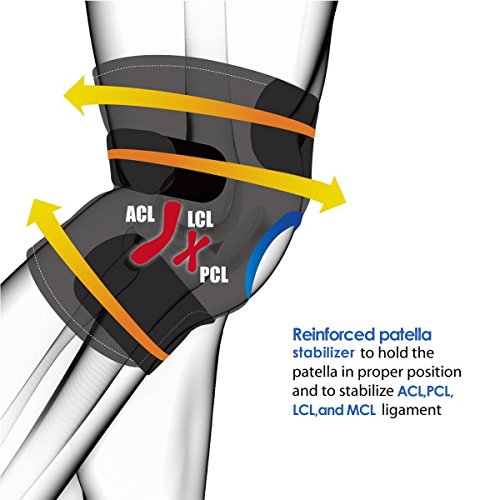 - OPEN PATELLA DESIGN For Support and Compression Around the Kneecap and Tendon Areas to Heal Knee Injuries. Also 4 Flexible Spring Stabilizers Provide Better Knee Cap Protection and Stability.