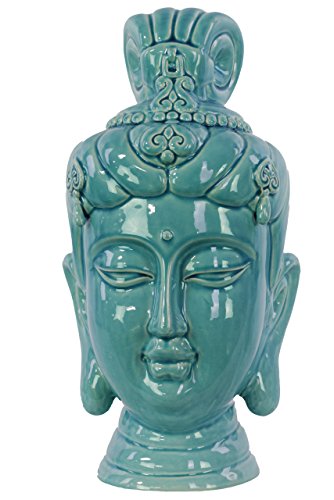 Urban Trends Ceramic Buddha Head Decor Gloss Cadet, Blue