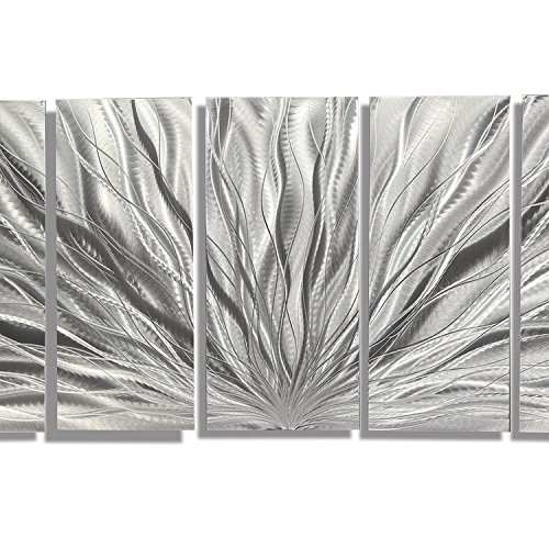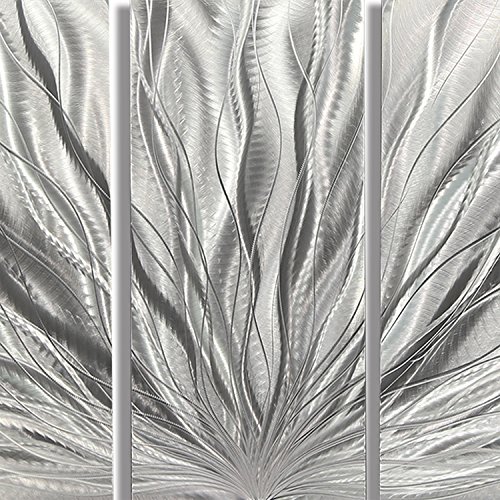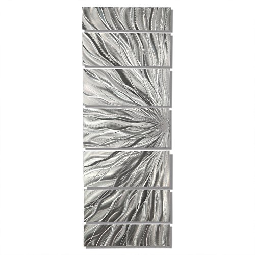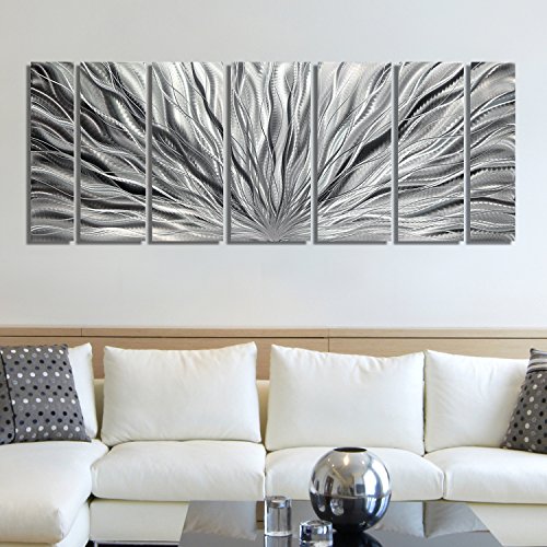 -. Feature : This beautiful silver wall art, Silver Plumage, will complement contemporary, modern, or traditional home décor and comes to life in light! / This large silver seven panel set of metal wall art measures 68 in x 24 in x 2 in (172.72 cm x 60.96 cm x 5.08 cm). The dimensions include 1 in spacing between the panels and a helpful measuring tool guide is included. / The art arrives ready to hang with pre-installed brackets for simple installation. The aluminum artwork is lighter than other metal artwork you may have handled before so hanging it is a breeze. Start enjoying your Jon Allen metal wall art right away! / Each handmade piece is signed by American artist Jon Allen and includes a certificate of authenticity. This is more than metal wall art - this is a unique piece of original artwork with a stunning glass-like finish. You will be amazed at the quality of this piece and may notice Jon's abstract influences like Chihuly and his love for clean lines and design that may evoke images of Frank Lloyd Wright's modern, balanced architecture. / With fast and careful shipping,FREE SHIPPING to the Continental US, excellent customer service, and a truly great value for original handmade art made with the highest quality materials, order with confidence today! Please don't hesitate to contact us for a number of other sizes, options, colors, and styles of metallic wall hangings, wall art, paintings and décor.