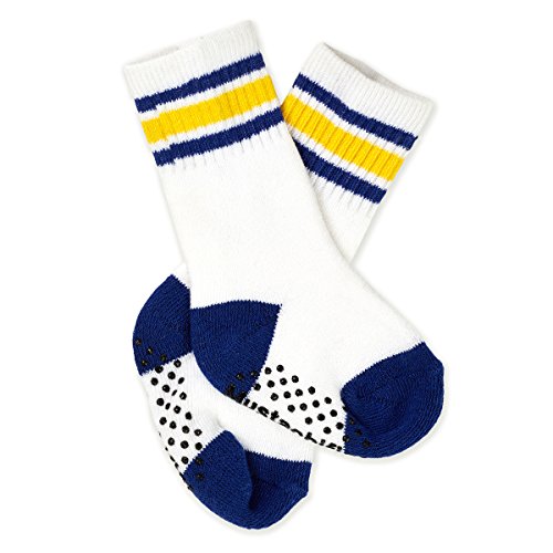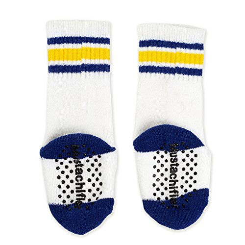 -. Feature : For babies 0-12 months. / Silicon anti-slip soles to ensure safety and stability. / Machine washable / Made from 80% cotton, 17% polyester, and 3% spandex. / Perfect socks for your baby's first steps!