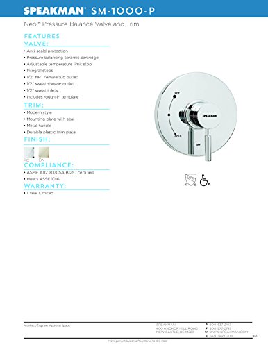 Speakman SM-1000-P Neo Pressure Balance Shower Valve and Trim, Polished Chrome
