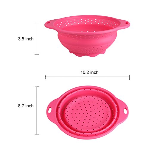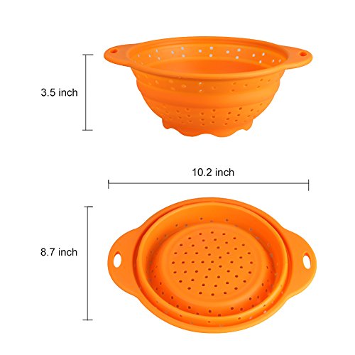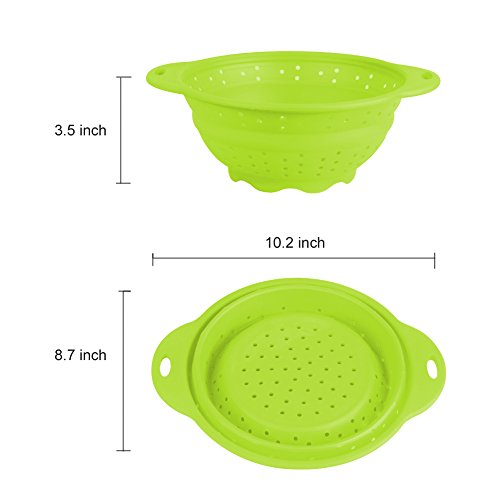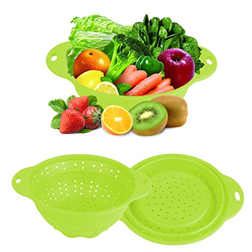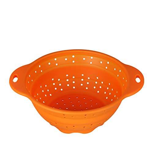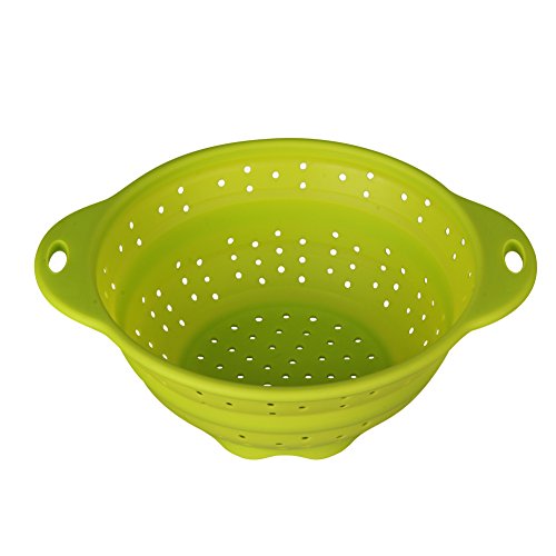 -. Feature : Unique collapsible silicone colander is perfect for apartment dwellers or others who need to save space in their kitchen as it folds down flat to about 1.0 inch. / BPA free and FDA approved / Use these wonderful colanders for all your kitchen straining needs. Works for fruits, pasta, potatoes, broccoli, and all kinds of vegetables, including leafy greens. / Flexible, safe non-toxic, easy to use, durable and sturdy with Non-slip Base and holes on the sides. / Ergonomic and comfortable handles. Heat resistant up to 400¡ãF. Can be immersed in boiling water.