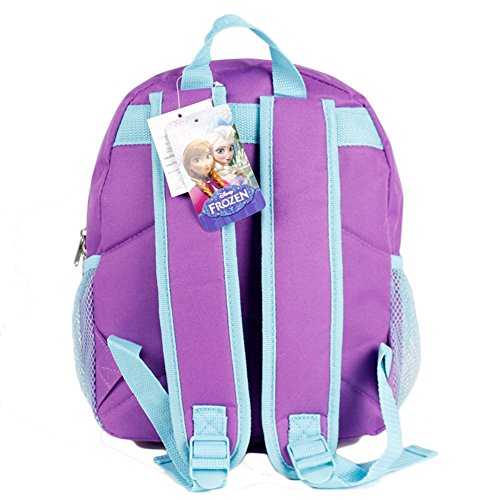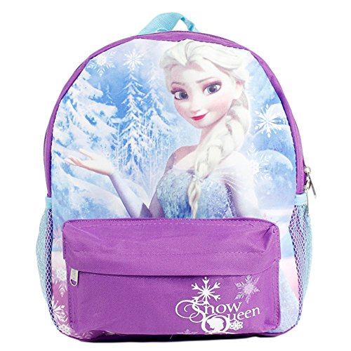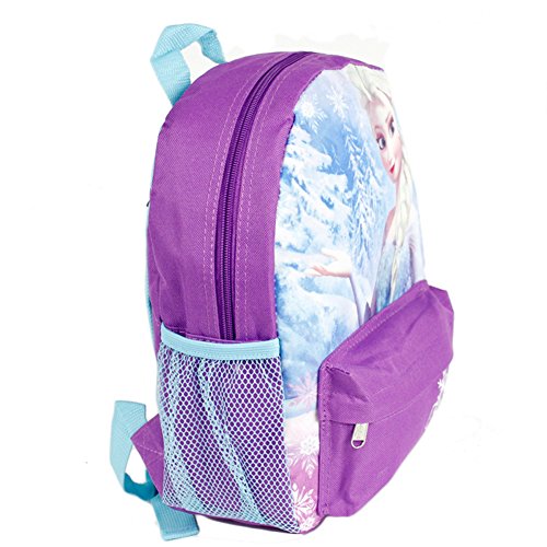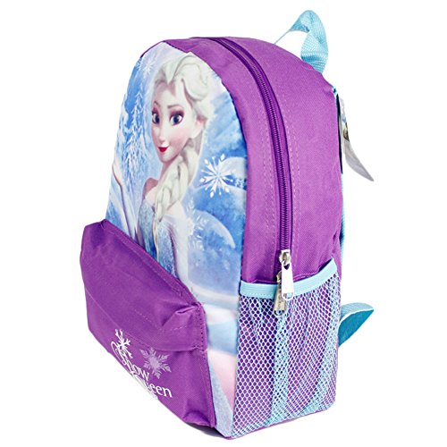 Disney Frozen Princess Elsa School Backpack for girls. Adjustable straps. 2 mesh side pockets, 1 main zippered compartment and front zippered pocket. Perfect for light carry use.