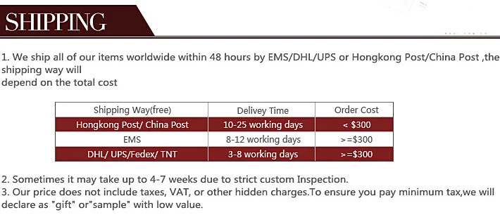 Shipping Method:CPAM, DHL, EMS, Fedex
