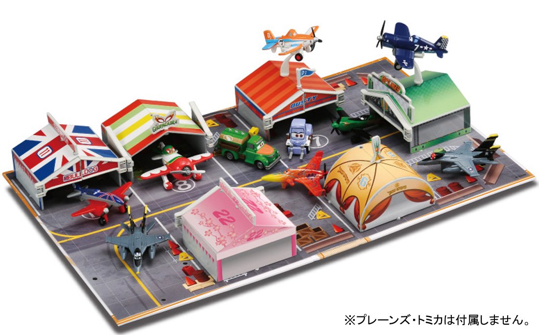 Diorama map reproducing the pit scene of the movie! There are six racing type plains tents! After playing it can be stored as it is.
