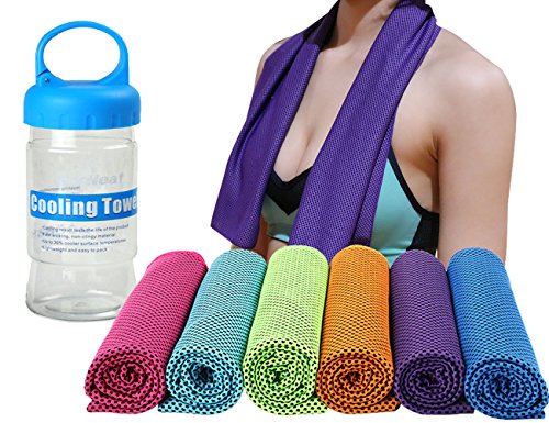 -. Feature : Last Long - Advanced mesh cooling material provides hours of relief without re-wetting / Easy to Use & Chills Instantly - Just wet, shake and chill / Completely Reusable - Just re-wet and shake and it will be cool again! / Extra Long & Multipurpose Sports towel, 40" long by 12" wide. It is easy to tie if you will be moving around a lot. Works great as golf club head cover, cooling bandana or neck wrap. Perfect size for running, cycling, hiking, camping, football, basketball, swimming, gym and fitness. / Comes with an air-tight storage container with a lid that can be hooked onto a gym bag or purse with a carabineer. With the waterproof plastic case, it's easy to carry everywhere without making other stuff wet. The container might be broken when shipping, you can contact us to get a replacement.