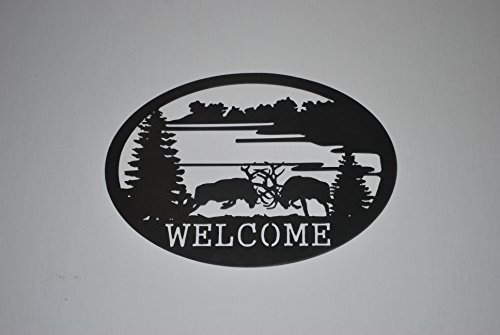 Original Metal Art Wildlife Welcome Signs - Western Style Home Decor - Wall Accessory (Fighting Elk)