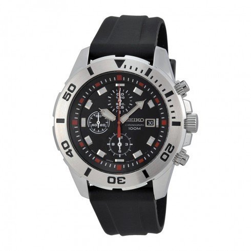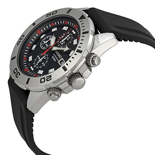 세이코import Men Seiko 세이코 SNDD95P2 크로노그래프 스테인레스 스틸 Case Rubber Bracelet Black Dial 남성용 맨즈 손목시계 (병행수입)